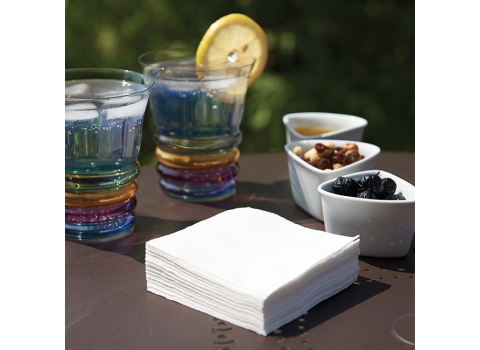 Cette mini serviette jetable molletonnée de couleur blanche est idéale pour les apéritifs, cocktails et buffets traiteurs. Son format déplié 20 x 20 cm s'adapte idéalement à ces types d'événements. Double épaisseur, elle est douce, résistante et absorbante. Sa matière en molleton est certifiée contact alimentaire. Conditionnée par paquet de 100