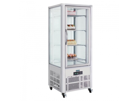 Équipée de quatre étagères réglables et d'un éclairage intérieur LED, cette vitrine permet une organisation flexible et une mise en valeur attractive de vos produits. Le refroidissement assisté par ventilateur assure une réfrigération uniforme et efficace.